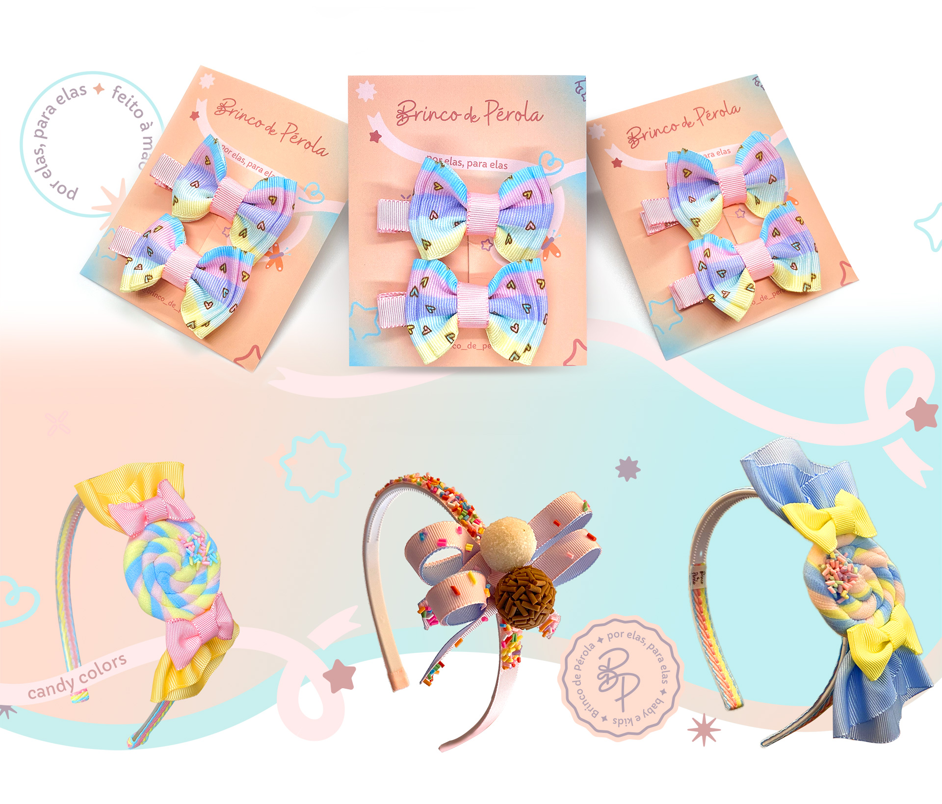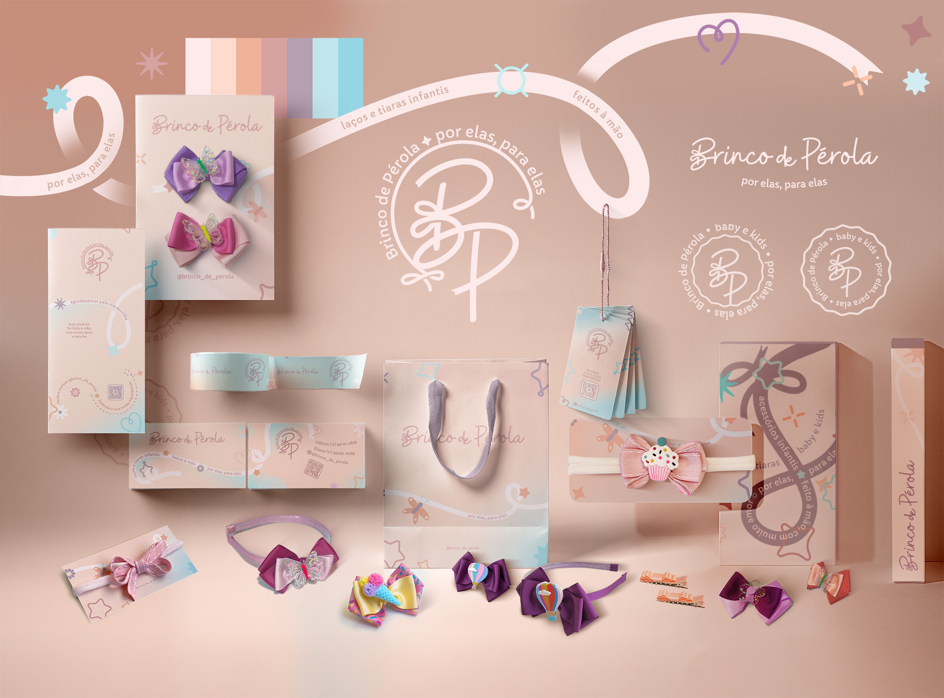 A marca Brinco de Pérola, apresenta uma identidade visual coesa e delicada, ideal para o público consumidor de assessórios infantis.Utilizando uma paleta de cores pastéis, a marca transmite suavidade e feminilidade, alinhando-se perfeitamente ao seu nicho de laços e tiaras infantis. O slogan “por elas, para elas” reforça a conexão emocional com o público-alvo, destacando a dedicação e o cuidado em criar produtos que celebram a infância e a beleza das crianças. A tipografia e os elementos gráficos utilizados nas postagens e na identidade visual da marca refletem um design afetivo, capaz de atrair tanto os pais quanto as crianças. A consistência visual e a clara definição do público-alvo fazem da Brinco de Pérola uma marca memorável e bem posicionada no mercado de acessórios infantis.